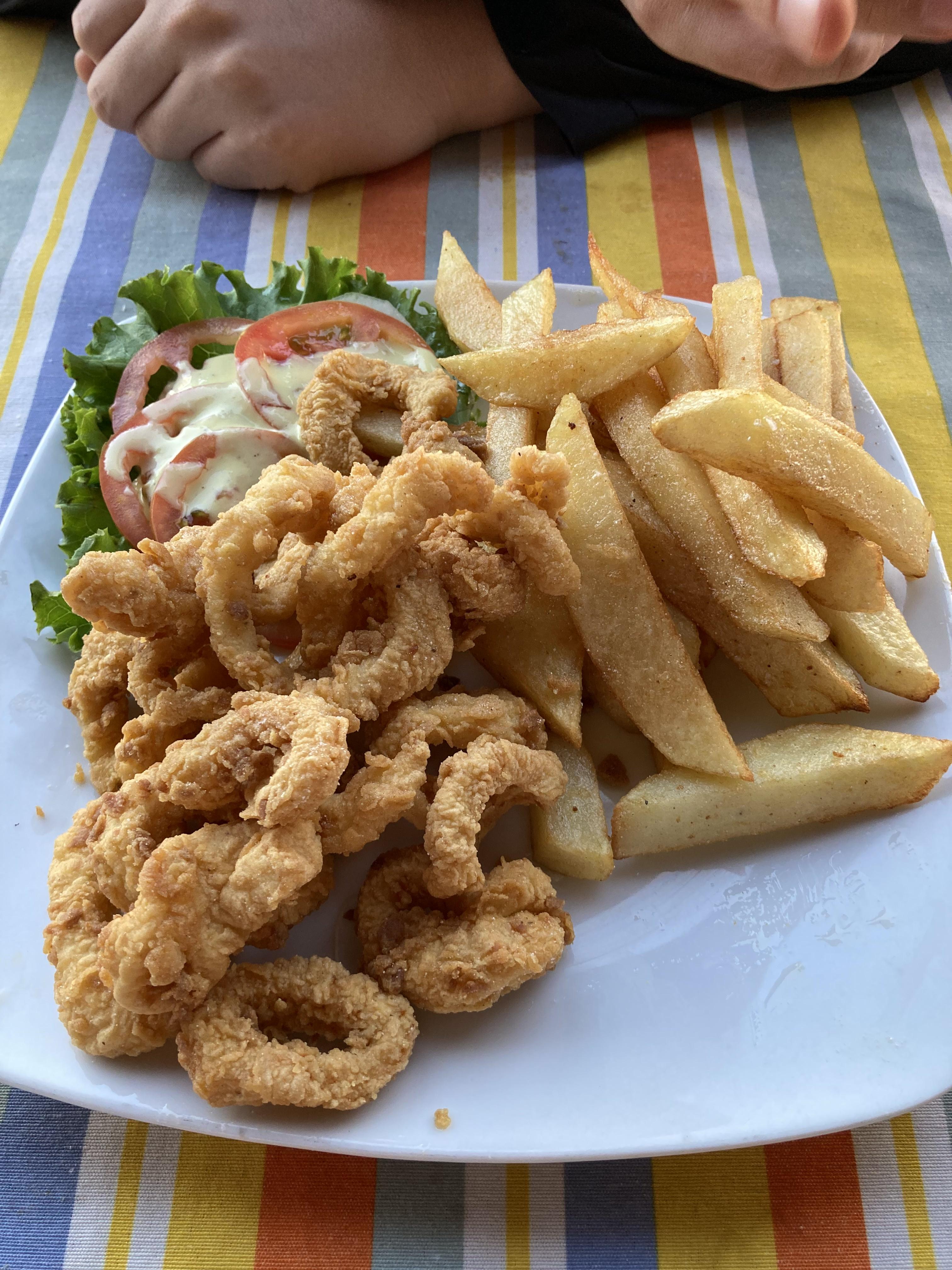 주문한 음식은 Chicharrón de calamar(오징어 튀김)과 concha(가리비)